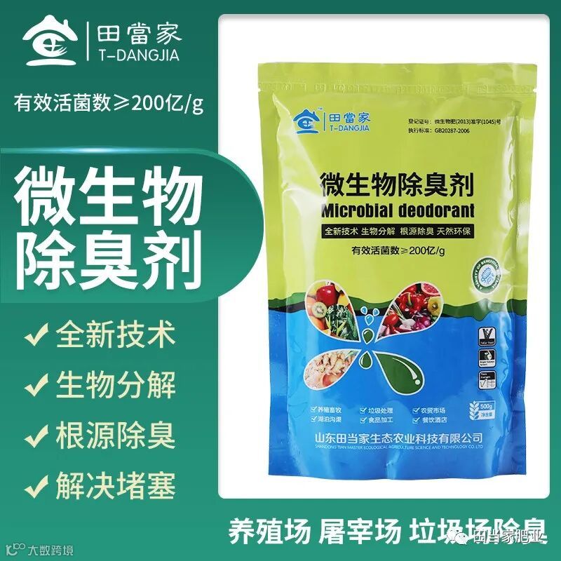 本品为微生物型除臭剂,通过益生菌的吸附,分解转化,消除腐败物质来达到除臭效果。对环境无二次污染,是目前最能彻底除臭最环保,也是成本最低的除臭产品。除臭剂直接洒在臭源表面,能快速抑制腐败菌的生长,有效吸收和降解氨氮物,硫化氢,甲基硫醇等具有恶臭味的有害污染,从而达到除菌抗臭的效果。产品的主要成分为有益微生物菌群,对于人和养殖动物没有任何伤害,动物食用还可以调节肠道健康,大大减轻排除粪尿的臭味,长期使用可以再环境中形成有益微生物群落,发挥持续稳定的除臭清洁作用。