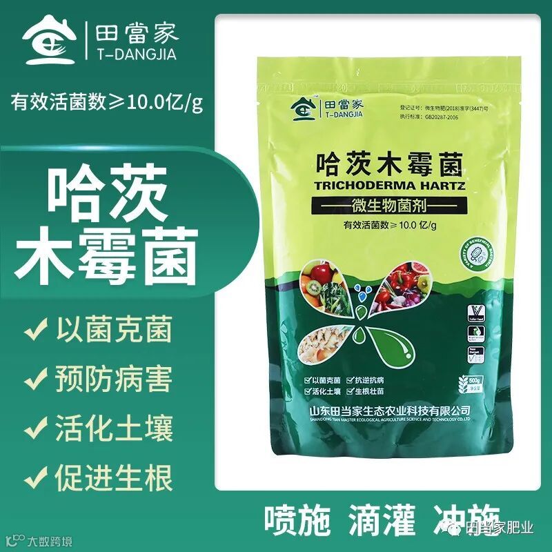 木霉菌广泛分布于土壤中,生命力强,具有广泛的适用性,主要作用是抑制农作物真菌病害,尤其是土传性真菌病害。由丝核菌引起的苗期立枯病,由镰刀菌引起的瓜类枯萎病,由刺盘孢引起的草莓炭疽病等,防治效果显著,另外在减少高温高湿型叶部病害上也有明显效果,如玉米大斑病,以及大棚里的蔬菜常见病害,如白粉病,灰霉病,霜霉病等。