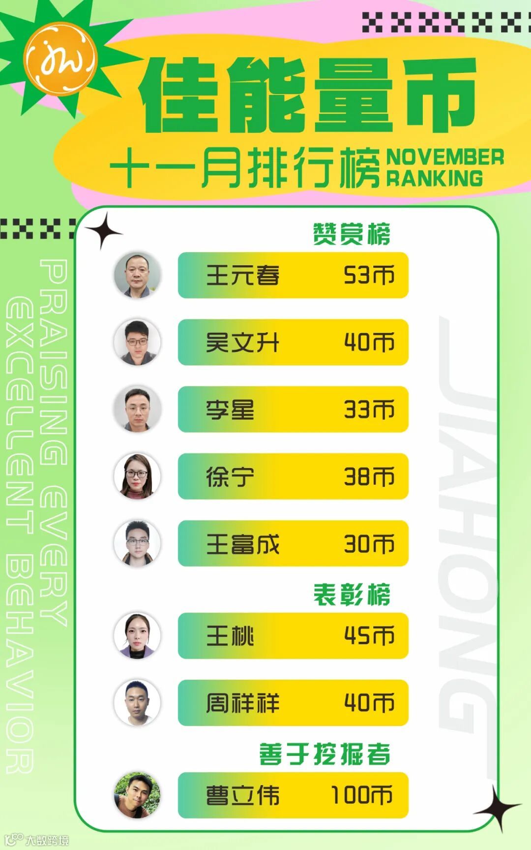 十一月佳能量赞赏不断,及时激励赋能!