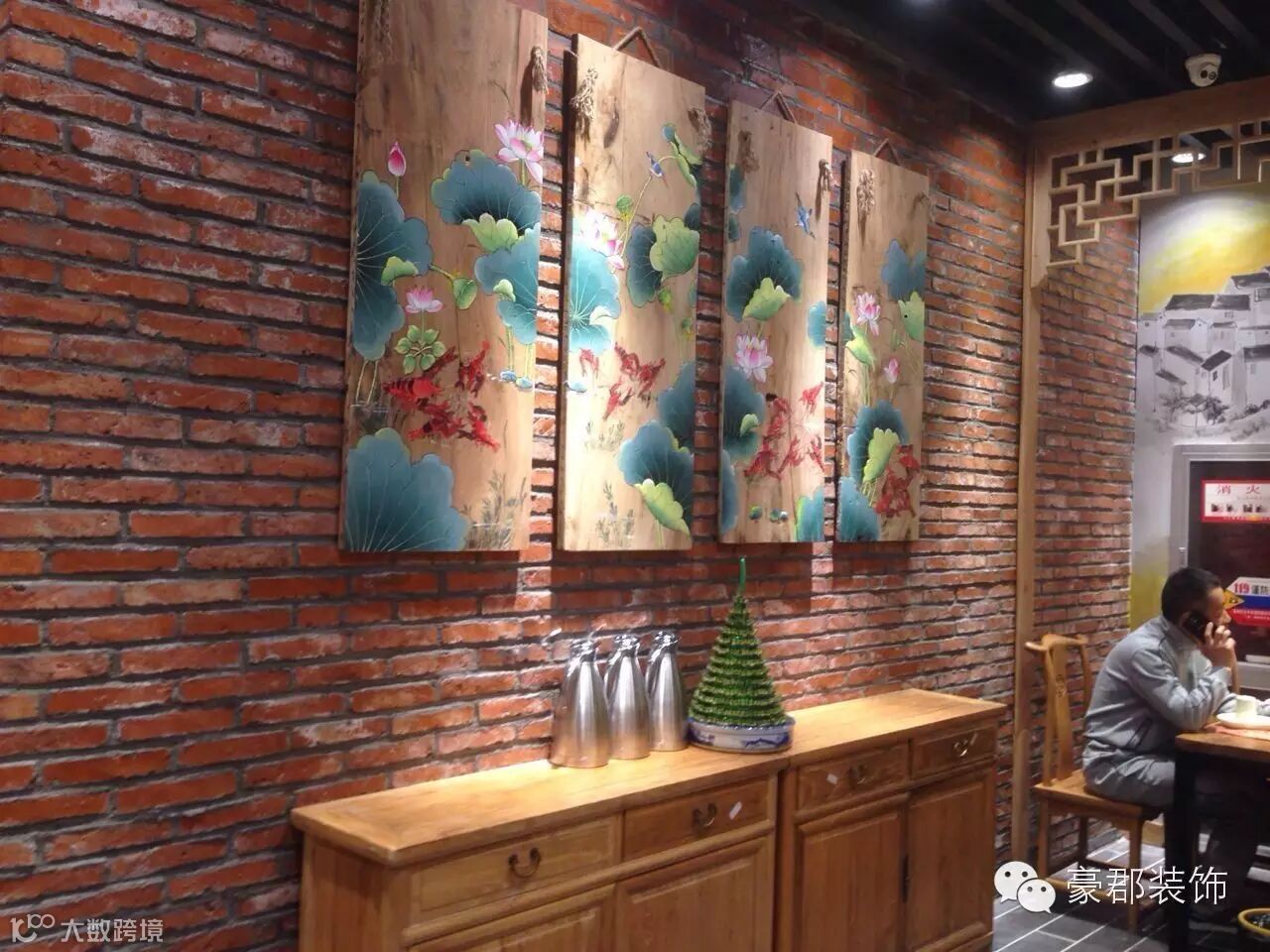 店里陈设讲究对称,重视文化意蕴;配饰擅用字画、古玩、卷轴、盆景,精致的工艺品加以点缀,木雕画以壁挂为主,更具有文化韵味和独特风格,体现中国传统文化的独特魅力。