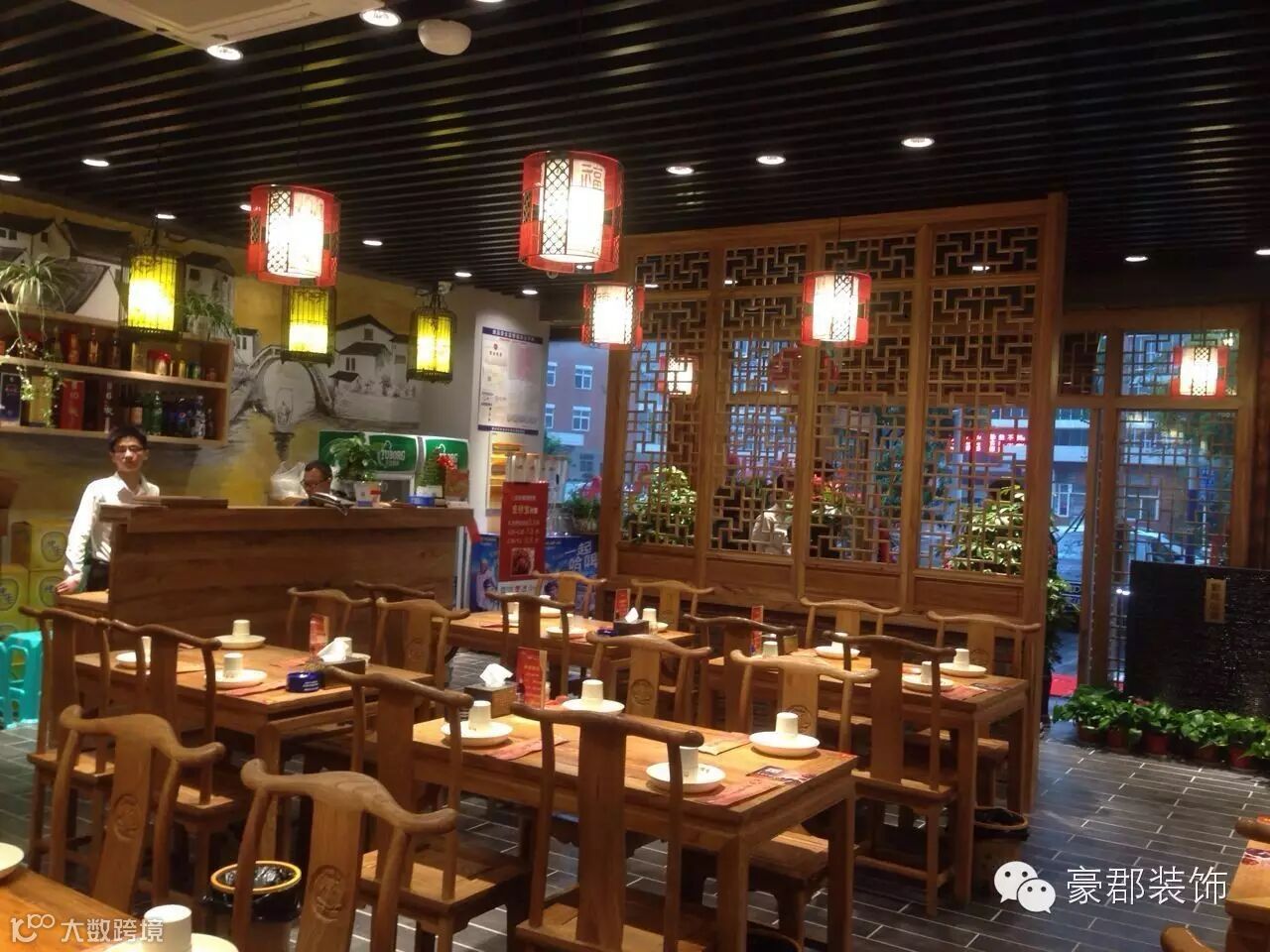 下面是小编现场记录下的照片,设计师运用现代中式风格将中国古典建筑元素提炼融合,让古典元素更具有简练,大气,时尚。让店面的氛围更具有中国文化韵味。不管是从合理的灯光照射,使那些古典元素充满生命,让人精神,照出一种温馨;浪漫的心情来。挂画的摆设,同样能渲染出书香世家的气氛。给客人一种心旷神怡的感觉!