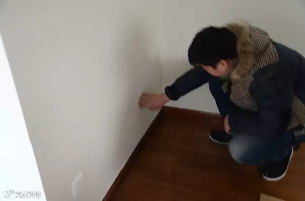 这户业主已经进入安装季,港台式风格;现在冬季墙面油漆比较容易开裂,监理正在检查墙面。