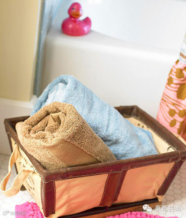 将传统的收纳方法和自己的DIY有效的结合起来,奇思妙想的将原本摆放杂志的置物架用来摆放毛巾,简洁有序。其实生活中的许多东西,只要细心发现,都能将它用到实处。