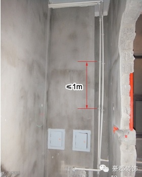 7.冷热水阀的水口距离要正确水平,所有水口与墙体平齐,左热右冷,开关、阀门安装平整,要便于使用。距离地面30cm以下的开槽应作防水处理。