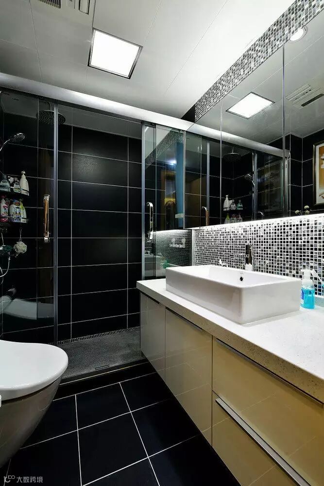 ▲ 黑色调卫生间用马赛克做点缀