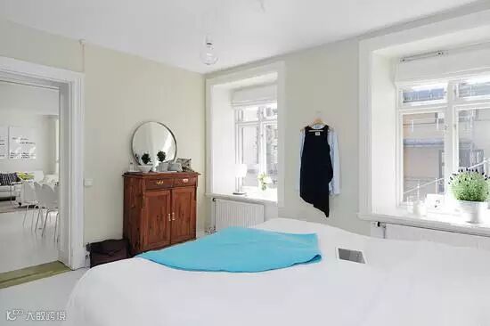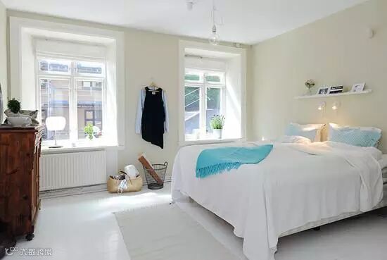 卧室也有着两扇很大的窗户,很好的给卧室补给了阳光。整个卧室透露出些许清新。