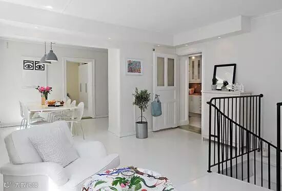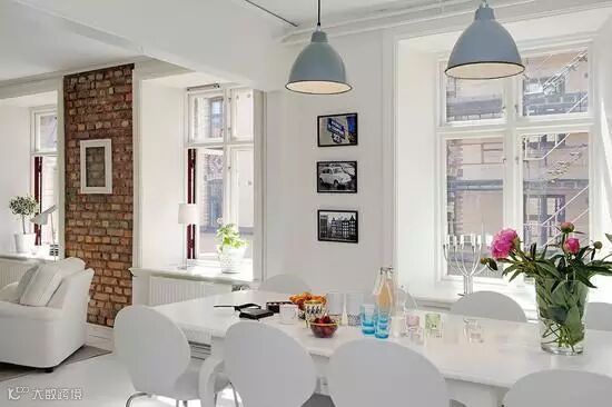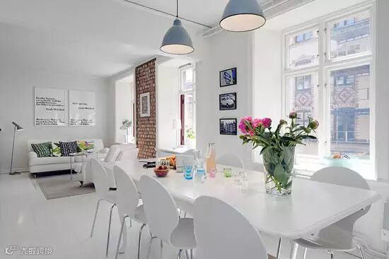 餐桌也是一系列的白,与白色的墙面和地板形成白色的主题。