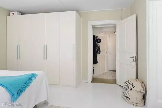 衣柜放在房间进门处,偌大的衣柜里能容纳许多主人的衣物。