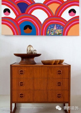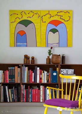 墙边柜上方的墙壁一般都是需要一幅挂画点缀的,否则会显得单调空洞,这样的一幅卡通画就很好了平衡了这个空间。