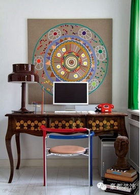 就因为这样一幅几何圆形的卡通线条画,墙壁不再单调,显得更加生动活泼和完美了。
