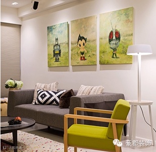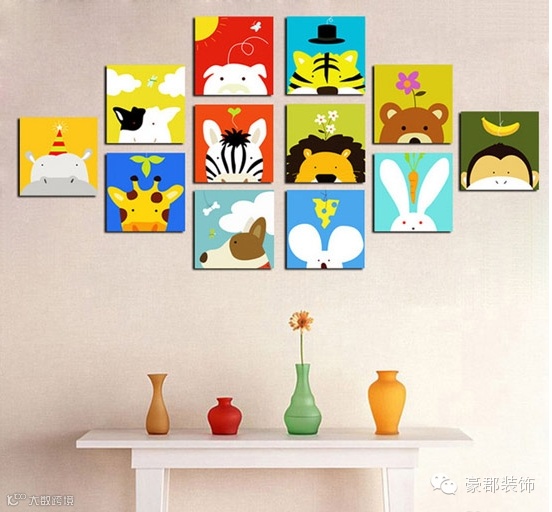 装饰画永远是空间中不可或缺的点缀,生动的装饰画能够增强空间的生动与趣味,图中这样一组动物主题的装饰画就对空间的色彩具有重要的调节作用。不同动物对应不同的颜色,可爱又多彩。