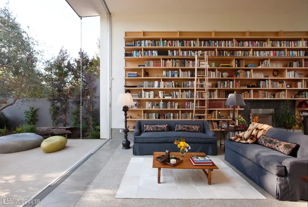 当然如果客厅的空间足够大的话,可以尝试以下的书房布局形式,脱离一般形式上的书房,也许会获得更多的感官享受。