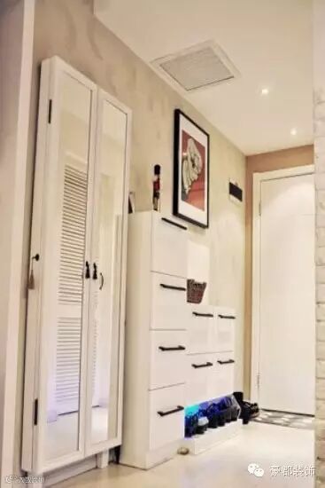 进门处,在这里布置了鞋柜,衣帽间,集收纳实用为一体。