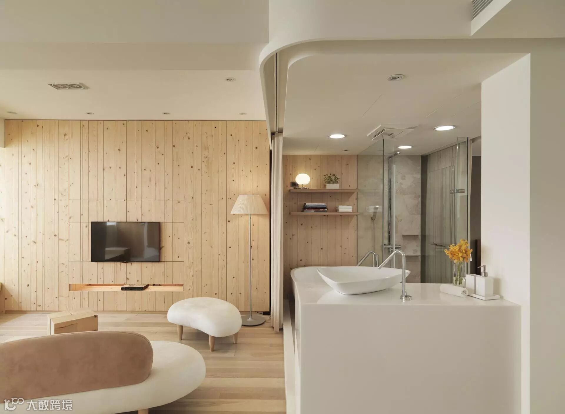 采用典型的现代简约设计风格,先考虑空间的实用性和空间的利用率,在原有的结构把空间做大做通透,同时给家增添些趣味性,搭配浅木色实木地板,以最简洁明快的表现形式满足业主对空间环境那种感性的、本能的和理性的需求。