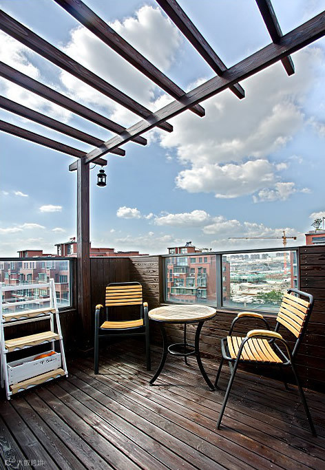 天台改造成私人花园。池子里可以养些鱼或是乌龟,无聊时看它们嬉戏。也可以坐在摇椅上晃晃,是不是有种在电视剧里的感觉呢!