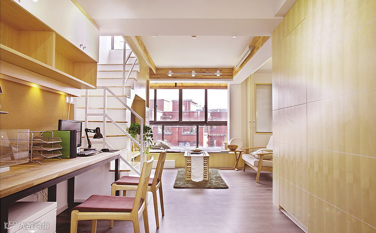 楼梯旁边是一张小书桌,那是处于客厅和餐厅的过道处的开放式书房。