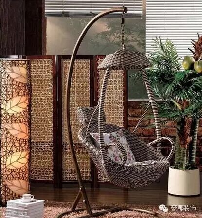 室内秋千椅:单人秋千椅这种室内单人秋千椅给人一种特别简单闲适的感觉,特别适合一个人安静的享受生活时光。