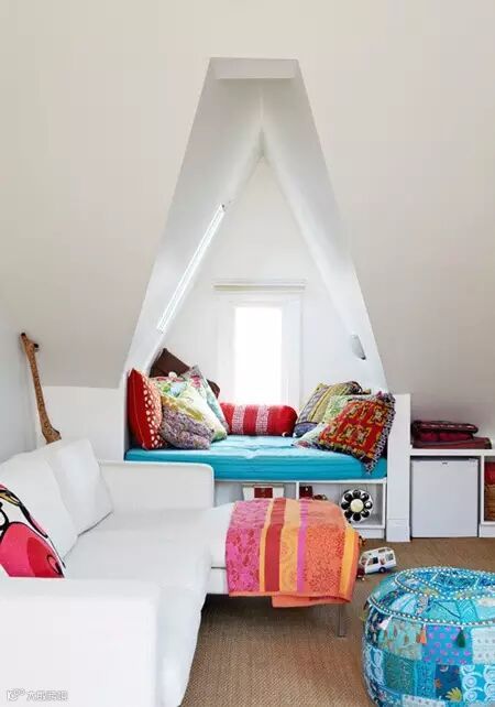如果窗台的空间较大,可以直接在台面上铺上床垫,添置上枕头、被子,一张合适的单人床也就组建成了,给客人留宿一晚绝对没有问题。