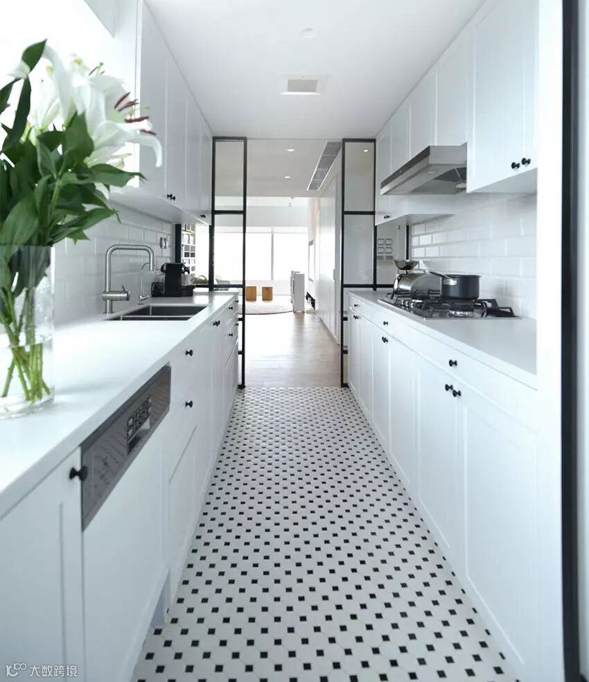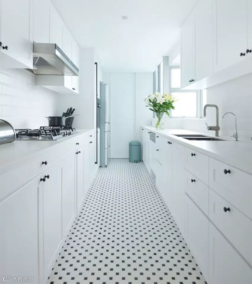▲ 全白色调的厨房,两侧都做了柜子