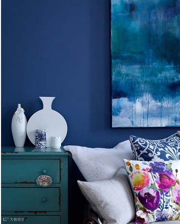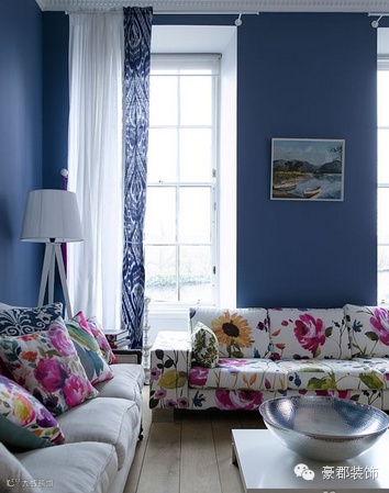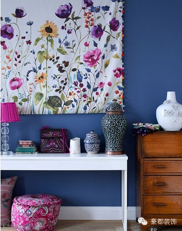 小编的话:大幅的布艺花朵装饰了蓝色的墙面,让墙面变得旖旎生动。