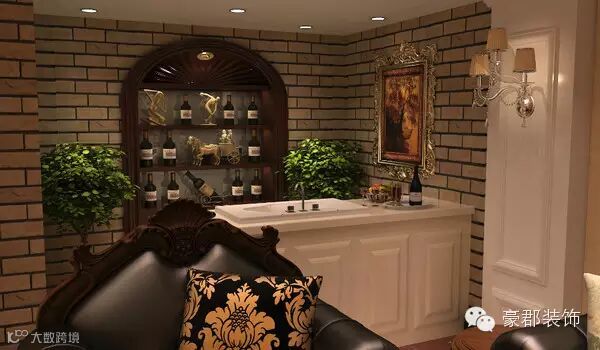 高大上的酒柜,欧式酒柜的设计与墙壁完美融合,采用拱形门洞式的酒柜,打造出一种浪漫的气质