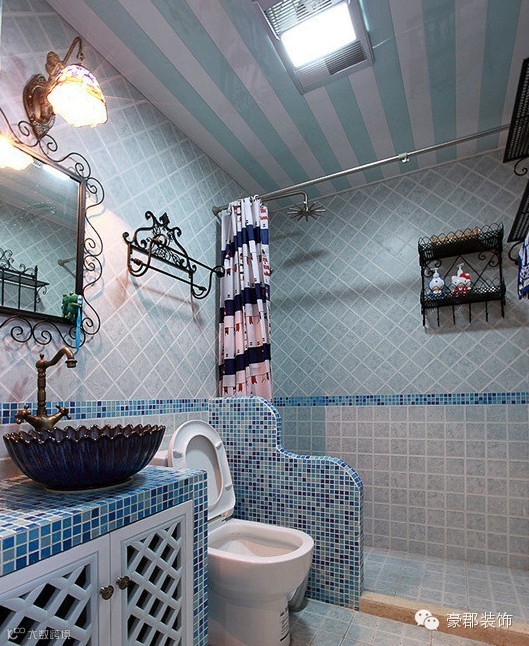 这个蓝色的小瓷砖我好喜欢,有股地中海的感觉,很清新.