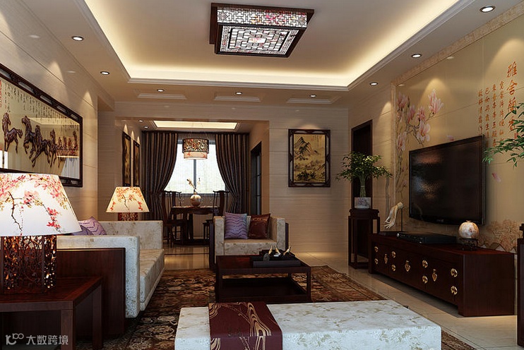 茗雕设计解读:多以中式产品和西式陈设为主。木质材料居多,颜色多以仿花梨木和紫檀色为主。空间之间的关系与欧式风格差别较大,更讲究空间的借鉴和渗透。