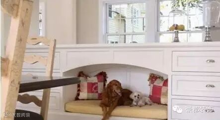 可以在家具定制过程中考虑萌宠的专属领地,把萌宠的家融入到家具设计当中。比如下图的两个例子。当然也可以单独设置一处小窝,方便随时移动换位置。