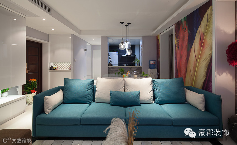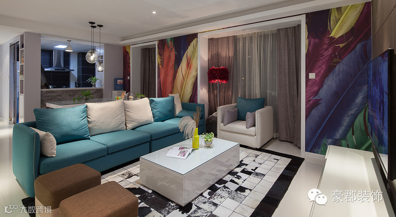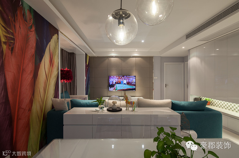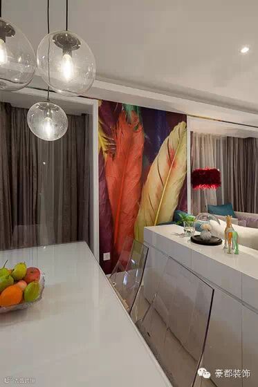 设计说明:设计师将设计语言化整为零,色彩的灵活运用,铺设出属于大宅的气度。这套居室的设计点睛之处在于客厅墙壁羽毛的运用,与空间连结而不突兀,每件精品优雅的柠立在属于自己的舞台!