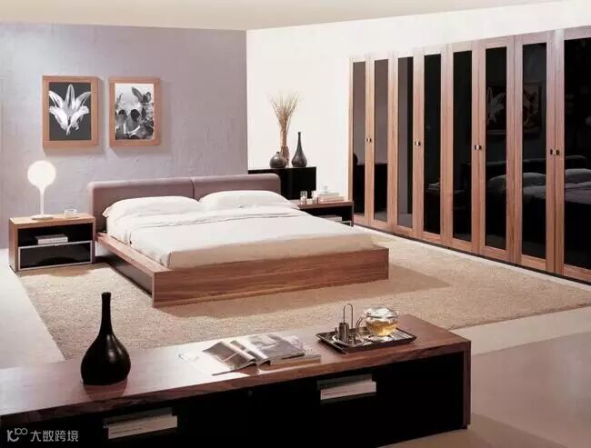 板式家具很适合现代简约风格,特别是对于预算捉急的同学是一个很好的选择。一般卧房五件套(大衣柜、床、两个床头柜、电视柜)五六千就能搞定,如果换成实木,就算是相对便宜的橡胶木估计都要两倍以上的价格。