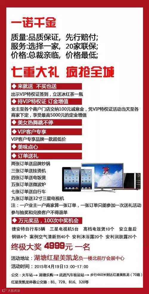 “豪郡@万博装饰大牌联盟,天天315”,春季家博会已圆满结束,还在为没有参加活动而后悔吗?还在为超实惠的折扣而叹息不已吗?不用急!“豪郡@万博湖塘红星幸福中国梦,快乐五一价”大型活动来袭,不要再等待了,快来报名吧!错过了,就真的错过了哟!