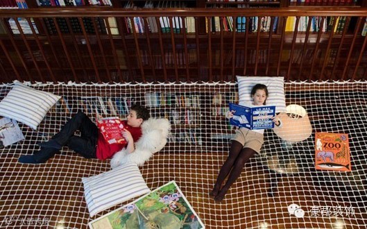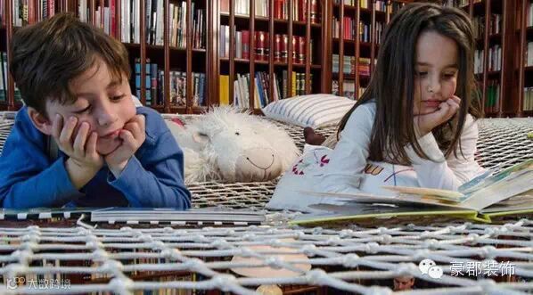 为鼓励孩子们边学边玩,西班牙马德里的创意工作室Playoffice带来了阅读网(Reading Net)的设计。实际上,阅读网就是简单的绳网,但通过与书房巧妙结合,设计师们不仅赋予了绳网全新的活力,也为书房创建了一个独特和有趣的阅读空间,使传统沉闷的书房变成对孩子们极具吸引力的地方。