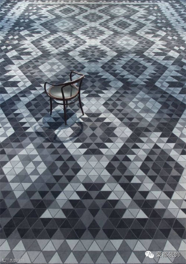 本人很喜欢的一种图案,正六边形的搭配能够将地面显得均匀而具有活力。而黑白灰更是一组完美的色彩。