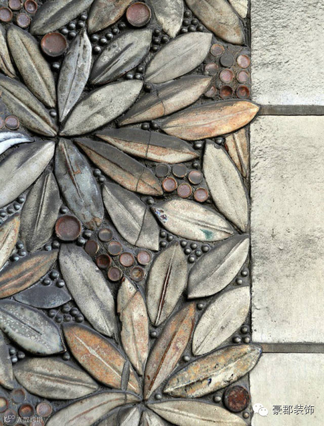 一种常见的拼花方式,将小马赛克根据预先设计的图案放在大面板上,再进行铺贴,一般是四块地砖就能拼出这样的效果,在很多场合我们都能捡到这样的地砖,其实用性可想而知。