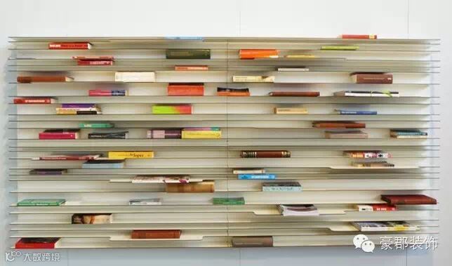 水平书架。由密集的平行面板组成,每一层几乎只能放一本书籍,有停车(书)场的感觉,密集恐惧症者慎用