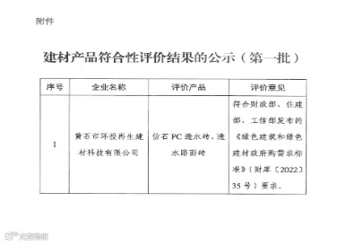 2025年4月25日,再生建材公司在创新改革和能力提升上取得新成绩--公司自主研发生产的透水路面砖与仿石PC透水砖,成功通过黄石市第一批建材产品符合性评价,成功入驻黄石市绿色建材馆,在公司核心竞争力打造和品牌能力塑造方面迈出关键一步。