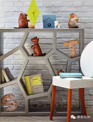 装饰TIPS:皮质动物摆件逼真活泼,马蜂窝状的不规则造型也很新鲜,组合在一起就是一对好搭档,让冷清的角落变得生动起来。