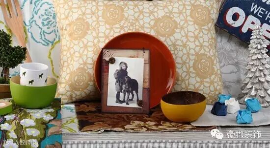 装饰TIPS:布艺装饰搭配棕色相框,小女孩和狗狗的黑白照片透出浓浓的暖意,小马图案的杯子更是清新可爱,衬得餐桌温暖又有趣。