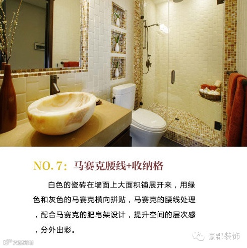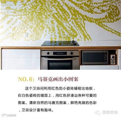 马赛克是一种很古老的装饰艺术。制作马赛克的材料包括大理石、小鹅卵石、玻璃砖、陶片、瓷片和珐琅等等。马赛克由于体积较小,可以作一些拼图,产生渐变效果。马赛克该镶嵌在什么地方?如何组合更有个性?这些设计如何应用到住宅的设计中去。
