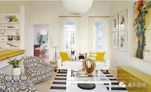 经典的黑白配色配上一点柠檬黄,让空间呈现出独特的清新宜人风情。人性化的单双人沙发设计,给家人更多的亲密。
