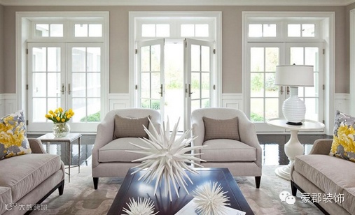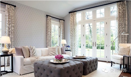 客厅的色调以淡色为主,充分诠释优雅温润的含义。软包上的鲜花装饰是客厅唯一的亮色,一下子点亮了客厅的色彩。