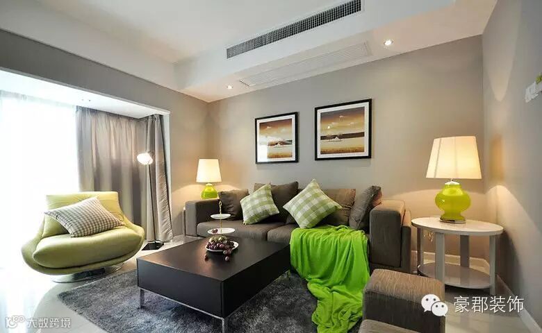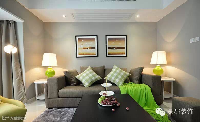 简单的沙发背景墙设计,直挂了两幅装饰画,很简单,简单中透着主人的生活品味。
