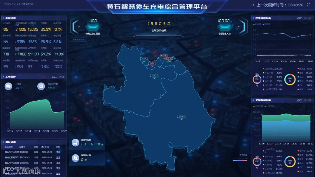 统筹推进一体化数据大平台建设,完成“黄石智慧停车” APP 与湖北省住建厅监管平台、湖北省长投“楚云停”的数据互联互通,通过强化设施管理、安全监管、数据分析,盘活充电资源,实现新能源车主多终端便捷找位,让停车充电 “少跑路、快到位”,持续提升运营质效与群众体验感。