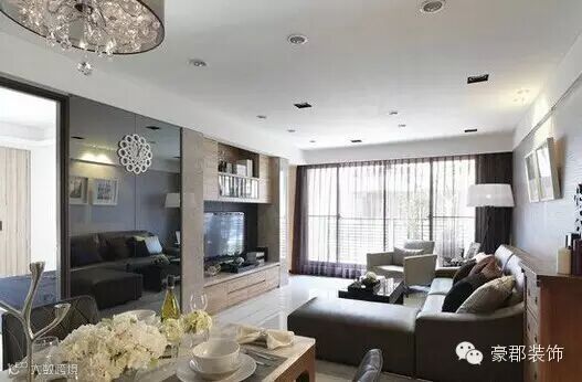 用镜面扩展空间其实不新鲜,镜子不仅能令狭窄的居室瞬间宽大,还能提升室内光线的亮度,营造出一种华丽、通透的家居氛围。我为大家分享的这套案例,设计师特别在公共空间处以镜面的方式,转折出各个领域的接口,在视觉上增添了层次变换,延伸扩展空间使视野更加开阔。