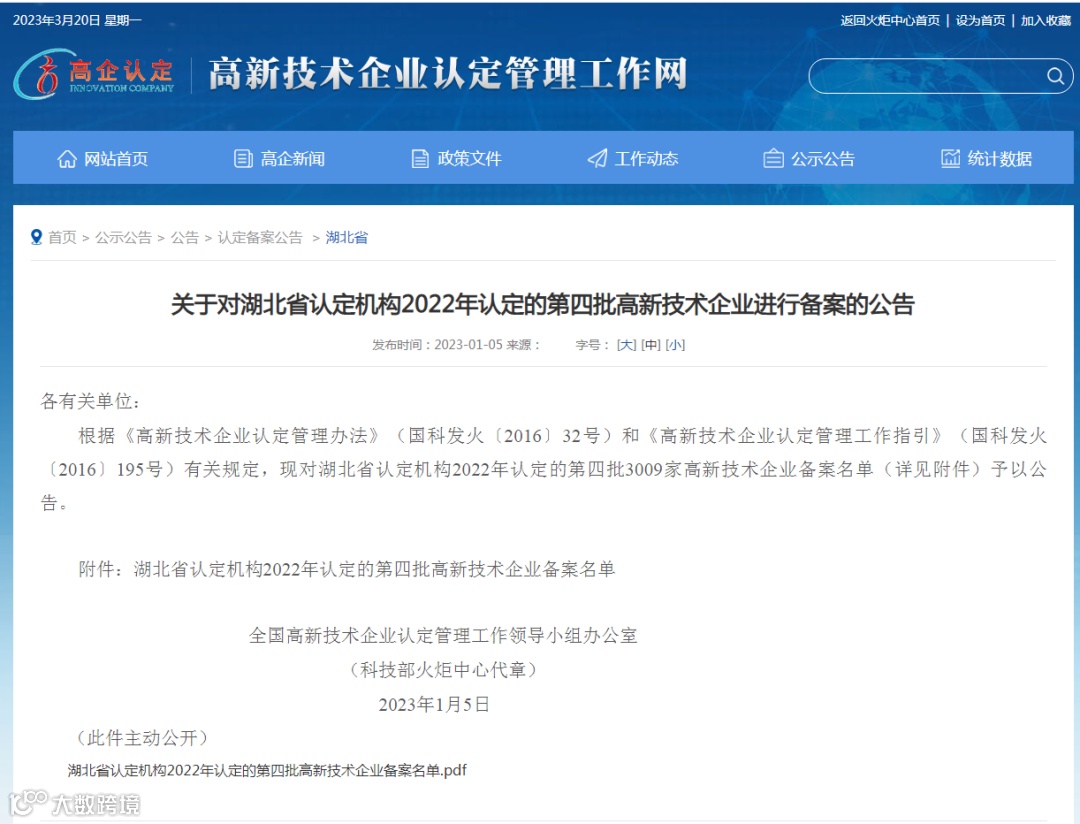近日,全国高新技术企业认定管理工作领导小组办公室发布《关于对湖北省认定机构2022年认定的第四批高新技术企业进行公告》,黄石市环境投资有限责任公司所属黄石市城发环境检测技术有限公司榜上有名。