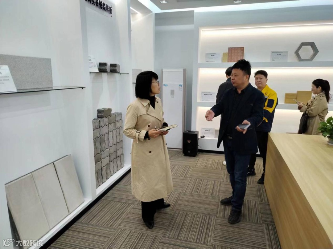 在环投公司副总经理石义森的带领下,张红莲一行参观了建材产品展示厅,详细了解再生建材产品如何通过破碎、分拣、加工,让建筑垃圾变成可用于建筑施工的各种骨料和再生砖制品。