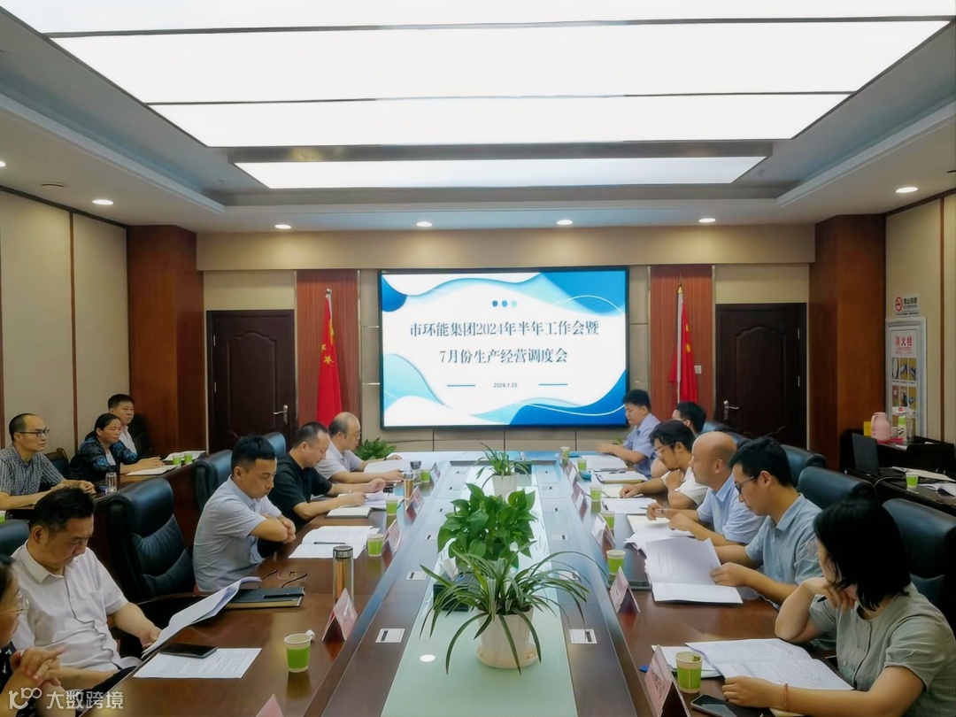 2024年7月23日下午,市环能集团召开2024年上半年工作总结会暨生产经营调度会,传达城发集团二季度项目拉练暨半年工作会精神,全面总结公司上半年生产经营情况,进一步分析当前形势,研究下半年谋划落实举措,动员公司上下坚定信心、振奋精神、锚定目标、实干巧干,推动各项工作落地落实,为圆满完成年度目标任务奠定坚实基础。公司党总支书记、董事长梁传敏主持会议并讲话,党总支副书记、总经理周俊总结并安排部署集团公司工作。