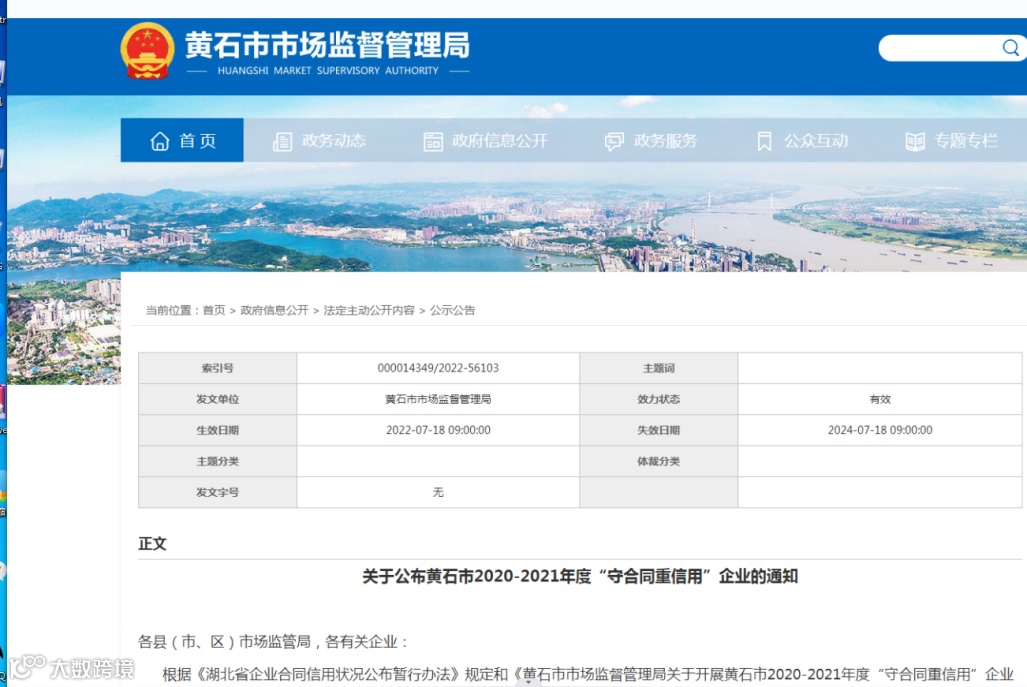 近日,黄石市城发环境检测技术(湖北环境修复)有限公司凭借良好的企业信誉和规范的合同管理系统,被评为黄石市2020-2021年度“守合同重信用”企业。