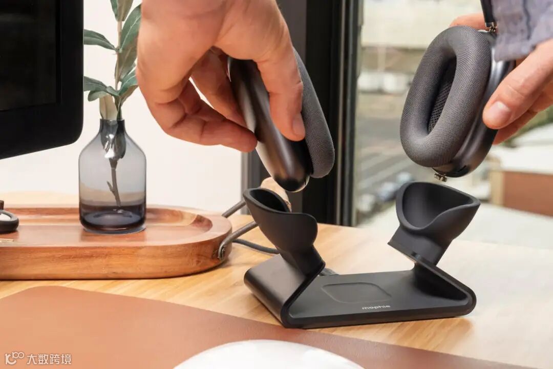 安装也可以轻轻松松,先把附赠的磁吸 USB-C 适配器插在 AirPods Max 的充电口上,再把耳机往支架的硅胶凹槽一放,磁吸会自动对准充电位,“咔嗒”一声就开始充电 搭配清晰 LED 充电指示灯,通电状态一目了然。