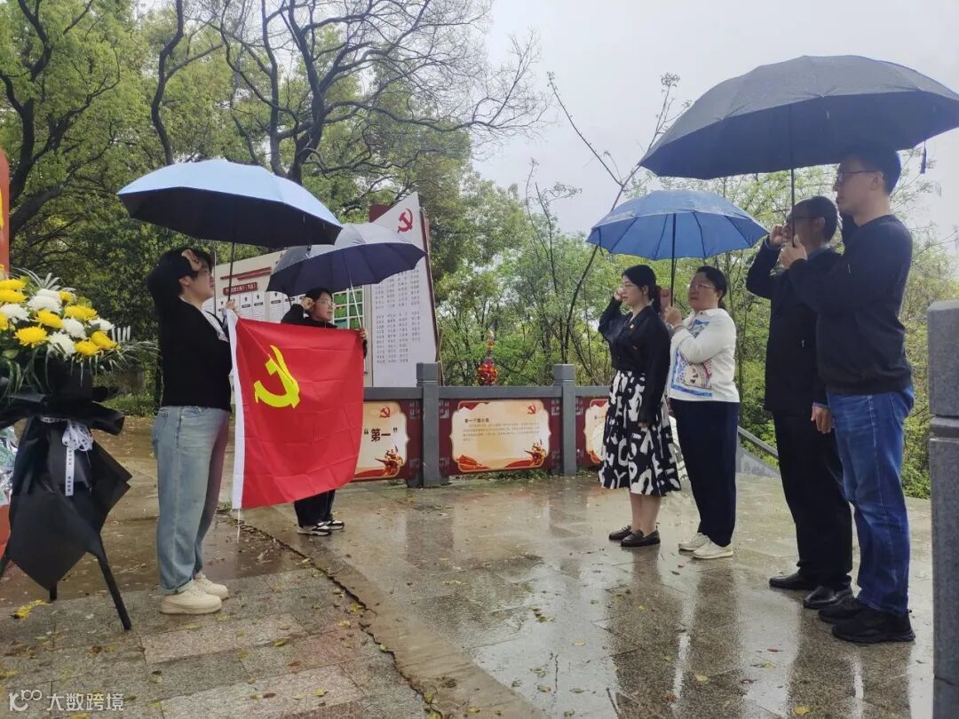 以山为灵,以木为魂,以石为碑。在巍然屹立的烈士纪念碑前,全体党员整队站列、神情肃穆,向革命烈士鞠躬默哀,党员代表向革命烈士纪念碑敬献花篮,表达对先烈们的崇高敬意。随后,全体党员怀着对革命先烈的无限敬意,面对鲜艳的党旗,庄严地举起右拳,重温入党誓词,在铮铮誓言中进一步坚定理想信念,凝聚奋进力量。